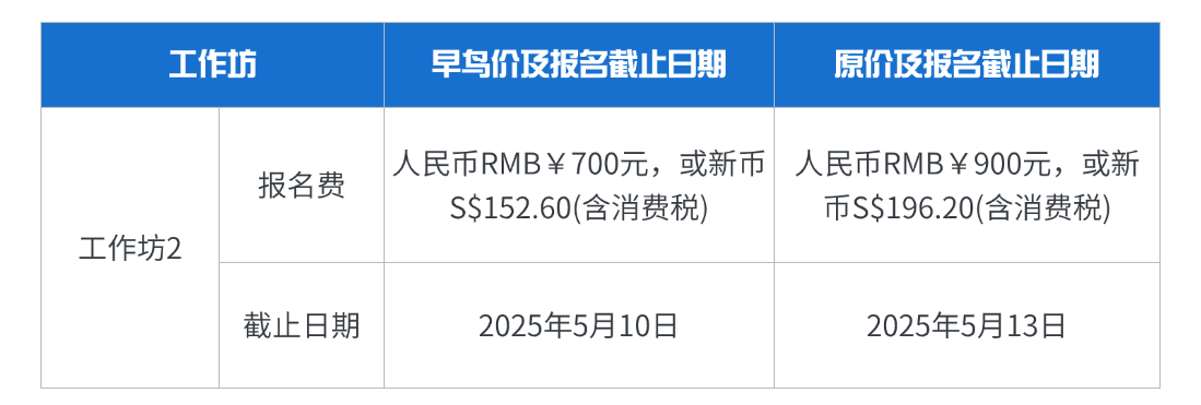 四、工作坊报名费及截止日期