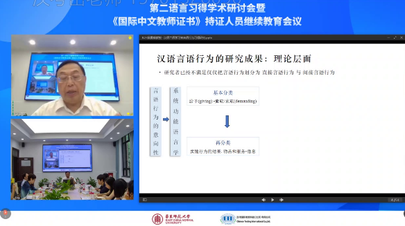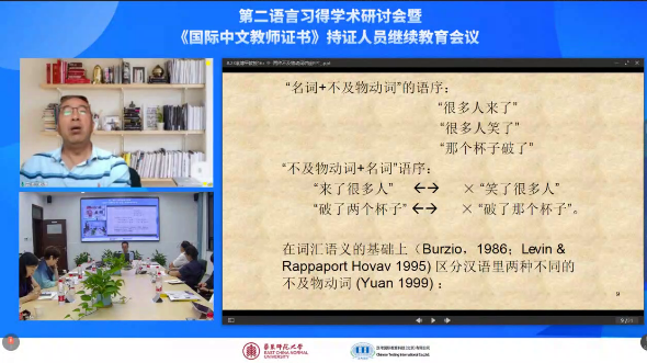 为探讨汉语作为第二语言习得的最新理论成果和实践经验,提升教师教学水平和研究能力,华东师范大学国际汉语文化学院、国际汉语教师研修基地、汉考国际与全球中文教师教育联盟、国家语委全球中文发展研究中心于8月22日-24日联合举办了“汉语作为第二语言习得学术研讨会暨《国际中文教师证书》持证人员继续教育会议(第十五期)”。