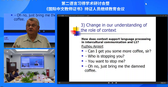 Istvan Kecskes教授带来了两场精彩讲座,主题分别是“How is intercultural communication changing the way we think about language? ”和“How does pragmatic competence develop in bilinguals?”。Istvan Kecskes教授从跨文化交际及语用学的视角出发,为国际中文教师提出了新的研究与实践方向。Kecskes教授借助“Lingua Franca”(不同语言、文化背景人群通用语)概念,多次强调了语言本身表达的内容与其交际功能的重要性,讨论了新兴语言及其正在发展的社会文化基础如何影响成年顺序性双语者现有的以L1为主导的知识和语用能力。Istvan Kecskes教授作为一名外国学者,长期致力于推进中文作为第二语言习得的研究,于2010年创建汉语作为第二语言研究协会,为国际中文教育研究者提供交流学术成果的平台!